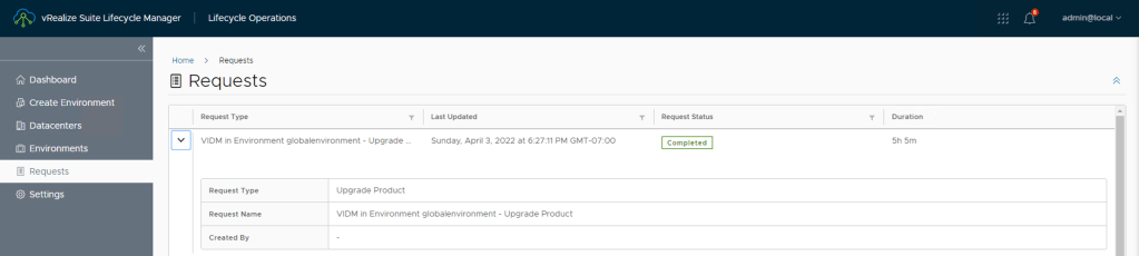Nota: Después de un par de minutos, en el servicio de Lifecycle Operations deberíamos ver el Request asociado a este reemplazo de certificados como Completed.