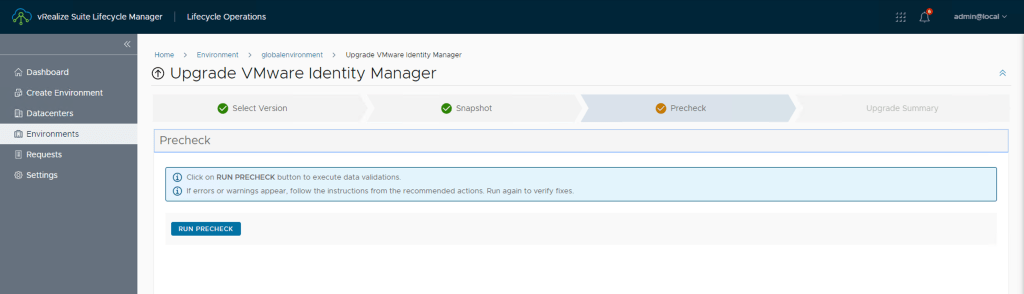 12. Para validar que el certificado que vamos a aplicar es correcto, debemos ejecutar un PRECHECK haciendo click en el botón RUN PRECHECK