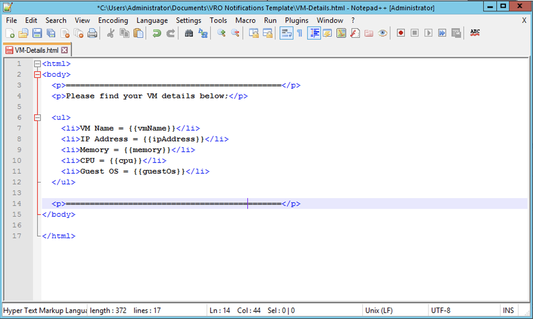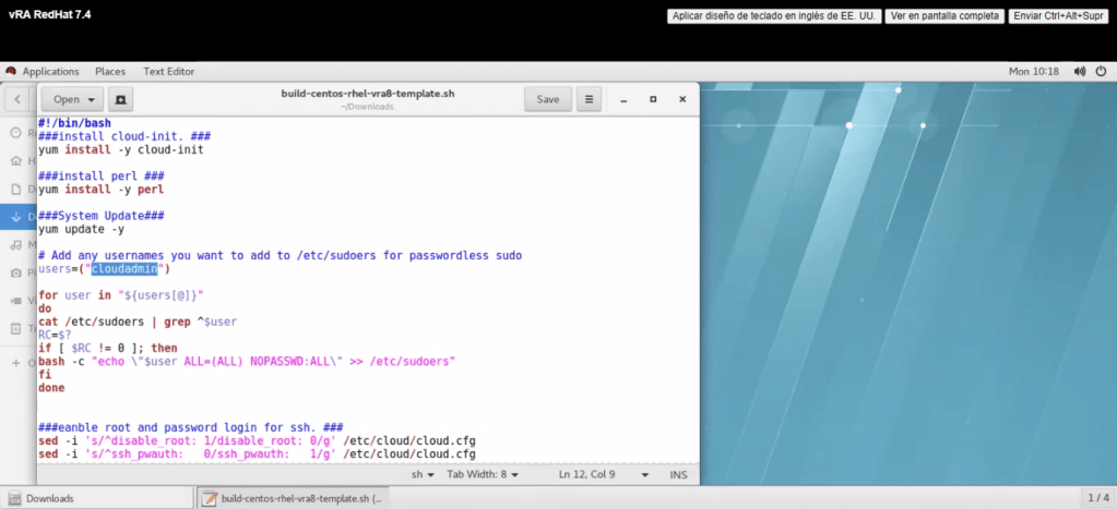 7. Tómese un tiempo para inspeccionar el script y cambiar el usuario cloudadmin por administrator o root (dependiendo de su configuración).