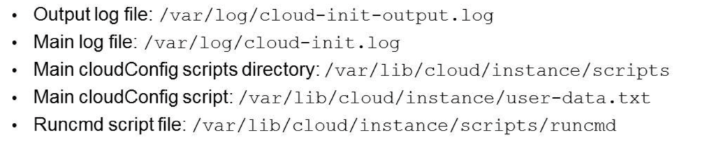 /var/lib/cloud/instance/cloud-config.txt dentro del OS. Esto es útil cuando necesitamos hacer troubleshooting y necesitamos validar si los comandos están entrando a la maquina.