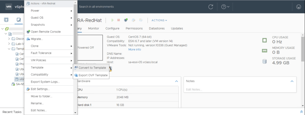 14. Convierta la maquina virtual en Template en el inventario de vCenter Server.