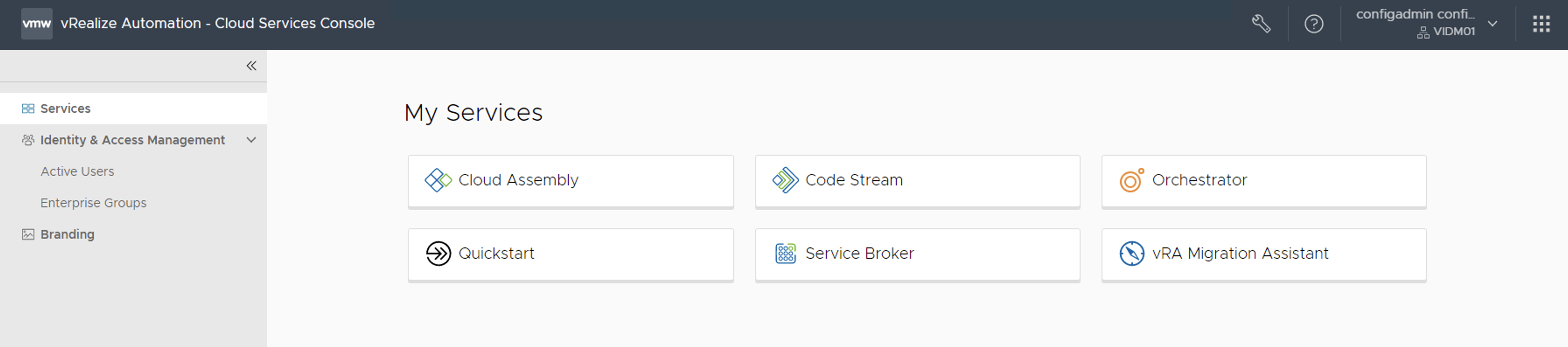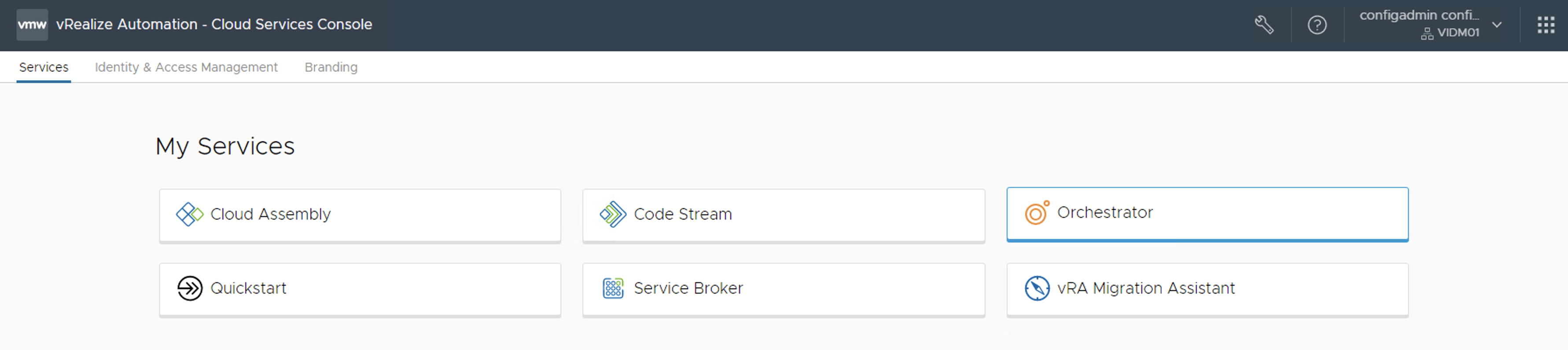 Vamos ahora a realizar la configuración en el servicio de Service Broker de Aria Automation, para esto hacemos login en la solución y en el menu principal hacemos click en **Service Broker