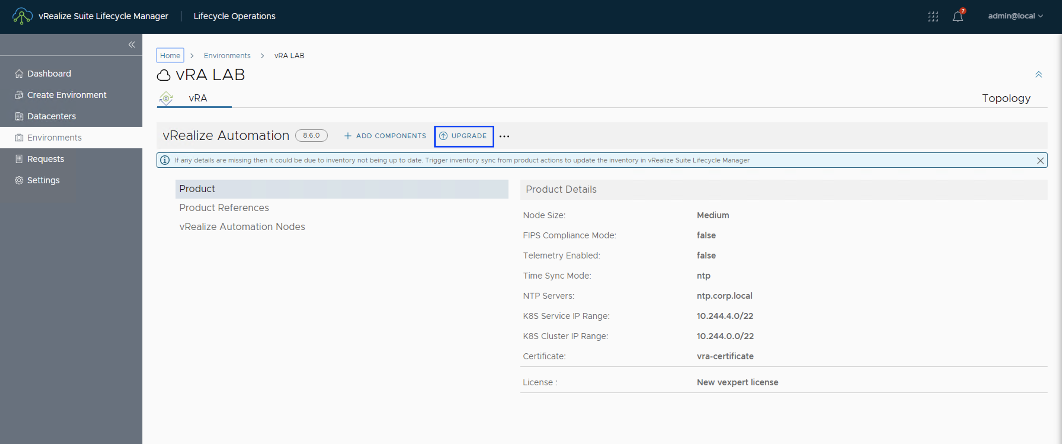 Nota 1: Si por alguna razon, reemplaza el certificado de una solucion de Aria Suite (vRealize Suite) sin haber cambiado el certificado del balanceador recibirá una notificación en el Aria Suite Lifecycle (vRealize Suite Lifecycle Manager) indicándole que debe reemplazar el certificado en el balanceador (Importar el certificado nuevo en NSX-T, NSX-v, F5, o el balanceador que corresponda) siguiendo la guia del fabricante, como comentamos anteriormente.