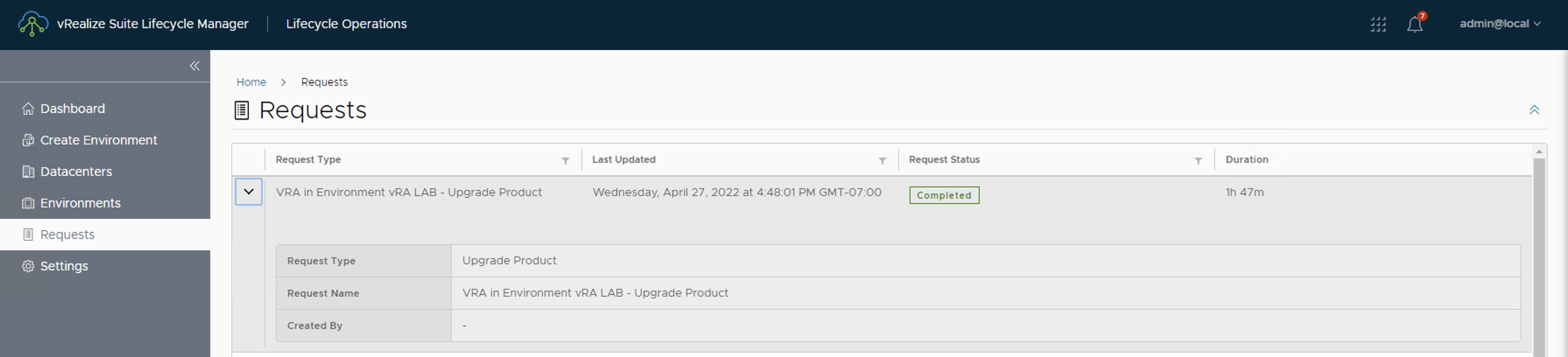 6. Una vez realizado el cambio de certificados en el balanceador, debemos realizar la action Re-trust Load Balancer en el servicio Lifecycle Operations-> Environments -> Para este ejemplo globalenvironment (ambiente asociado a vIDM o WS1).