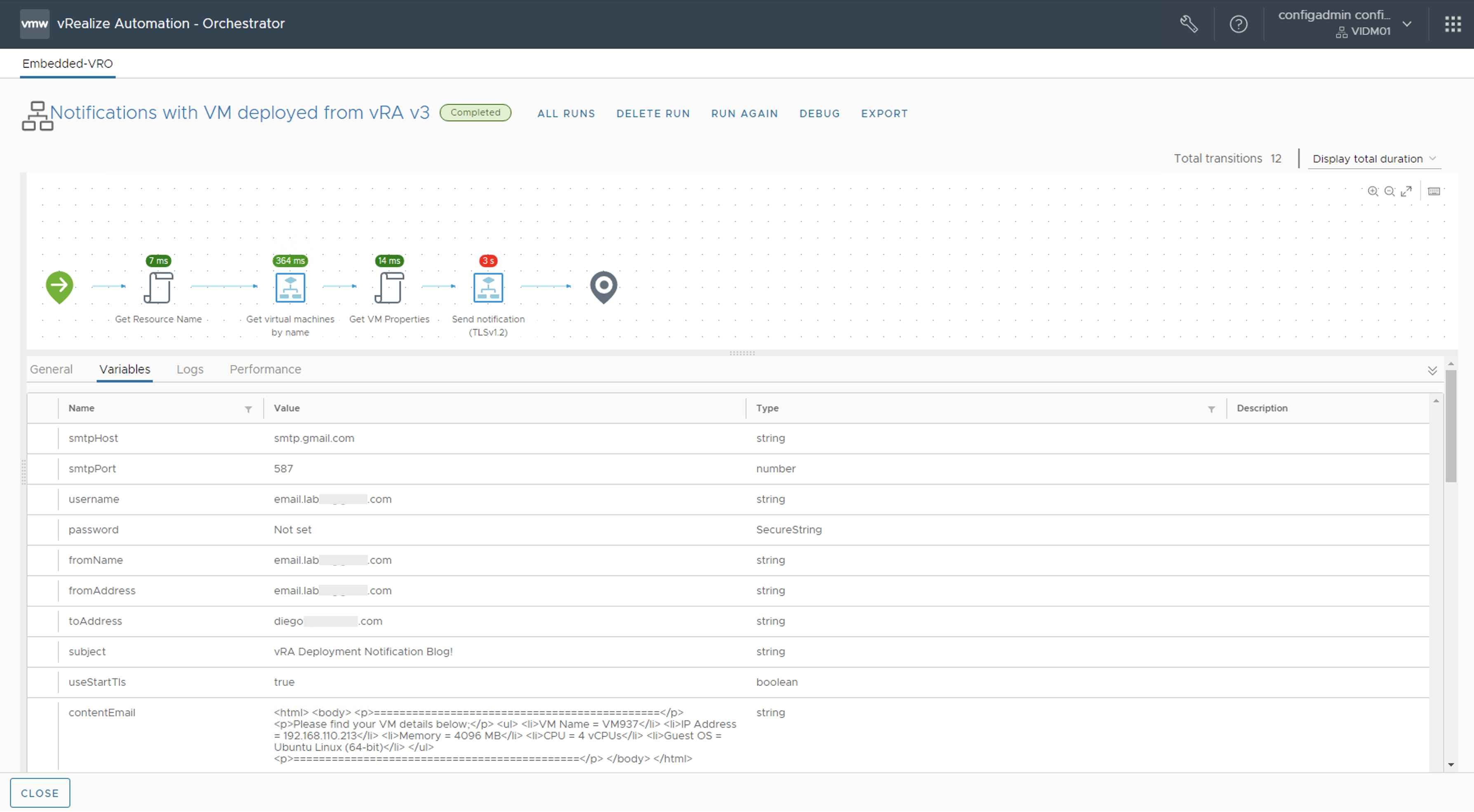 Una vez realizados los pasos anteriores, podemos aprovechar las notificaciones que envía Aria Automation Service Broker a los usuario para cada uno de los escenarios indicados en la documentación oficial Send email notifications to Automation Service Broker users