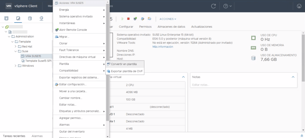 7. Convierta la maquina virtual en Template en el inventario de vCenter Server.