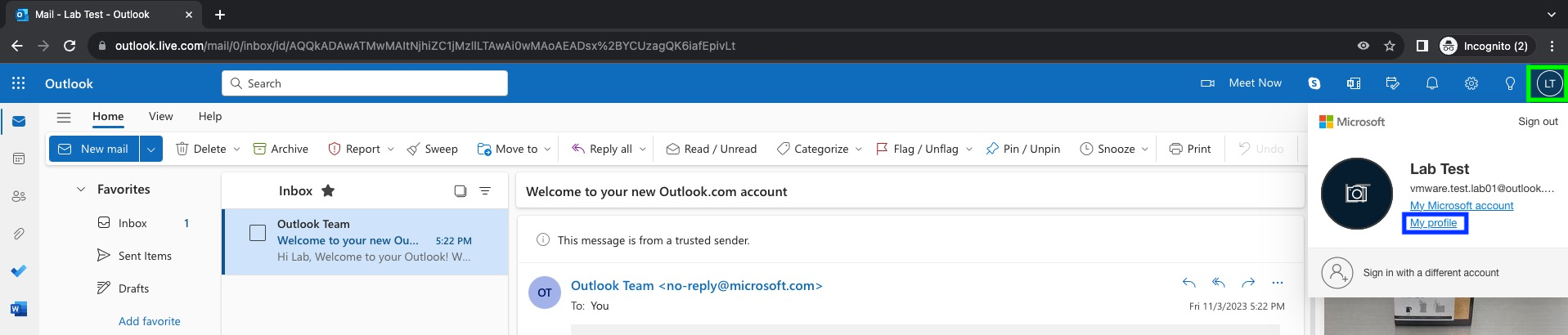 Ingresar a la cuenta Outlook que utilizaremos para ser configurada como SMTP server de Aria Automation. Sino tiene una puede crearla desde la pagina oficial de Outlook