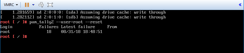 6. Ejecute el comando pam_tally2 –user=root –reset para desbloquear el usuario root