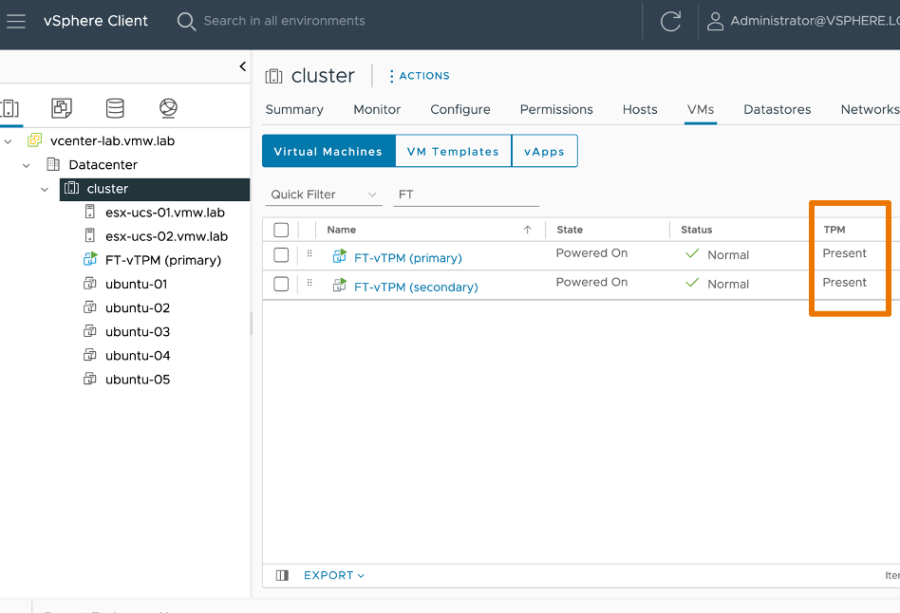 También se ha mejorado el soporte para vTPM, permitiendo que las máquinas virtuales protegidas con vTPM sean totalmente tolerantes a fallos, es decir que podamos protegerlas con Fault Tolerance.